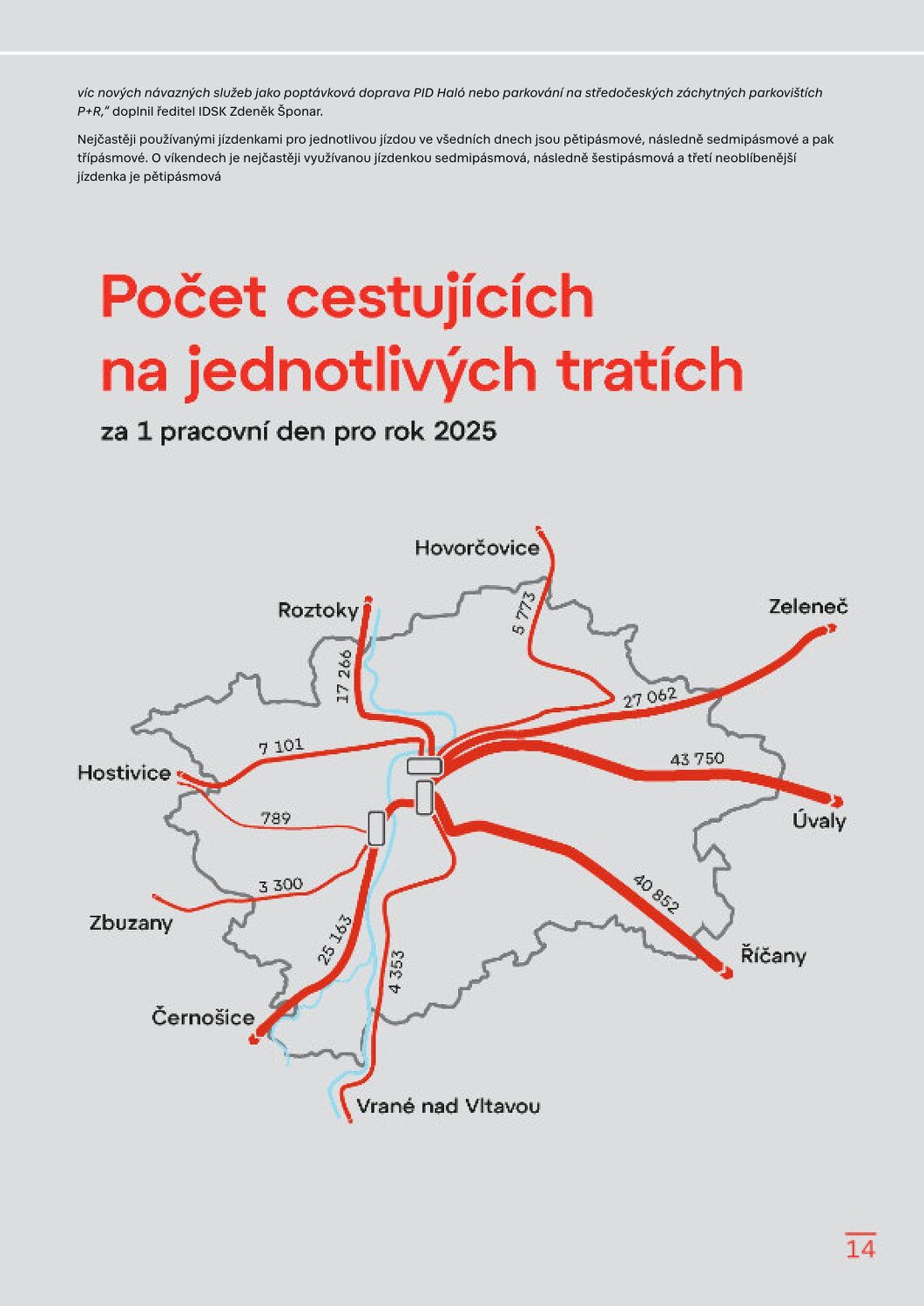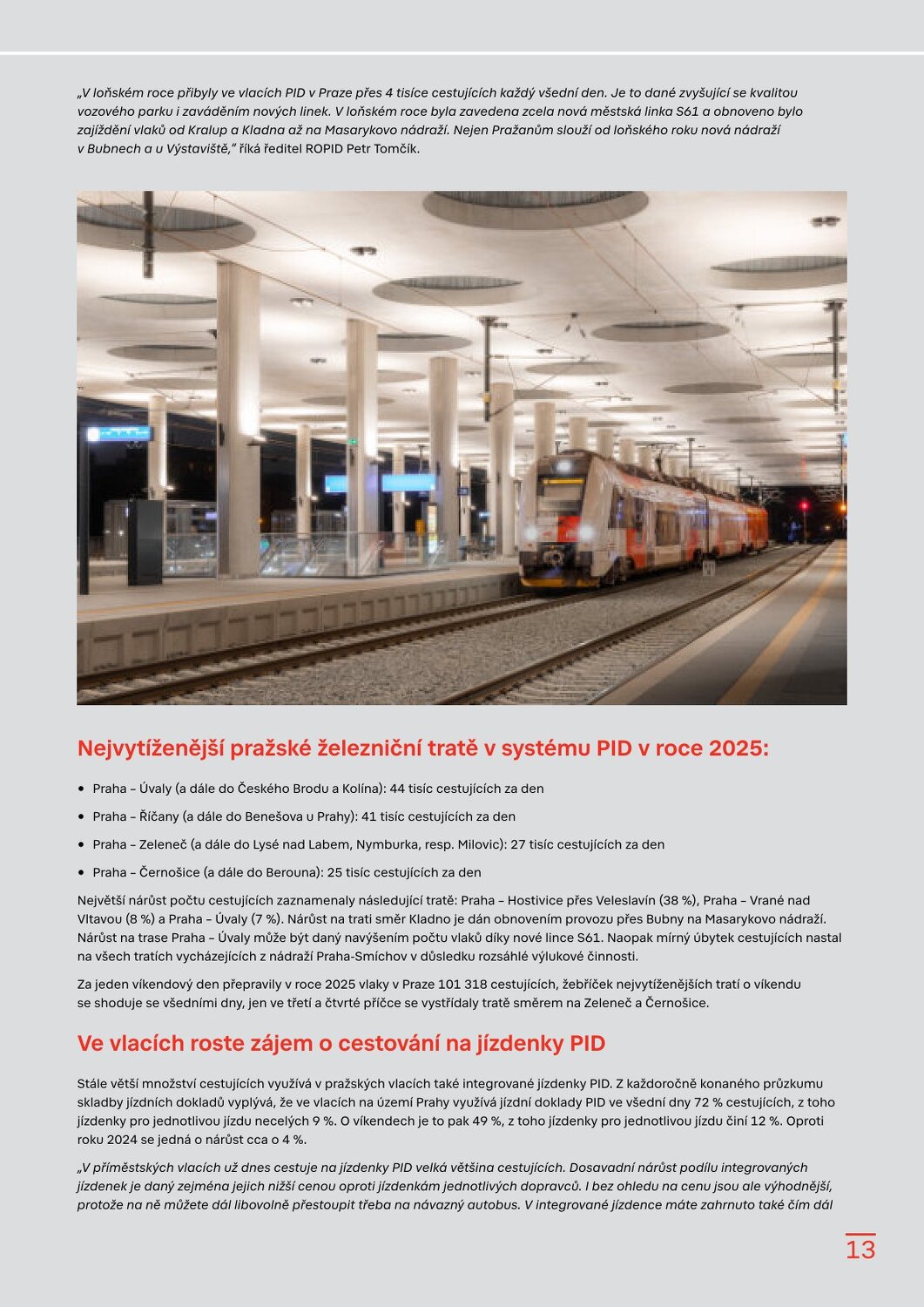 Vlakem jezdí po Praze čím dál víc lidí, zvyšuje se také podíl integrovaných jízdenek