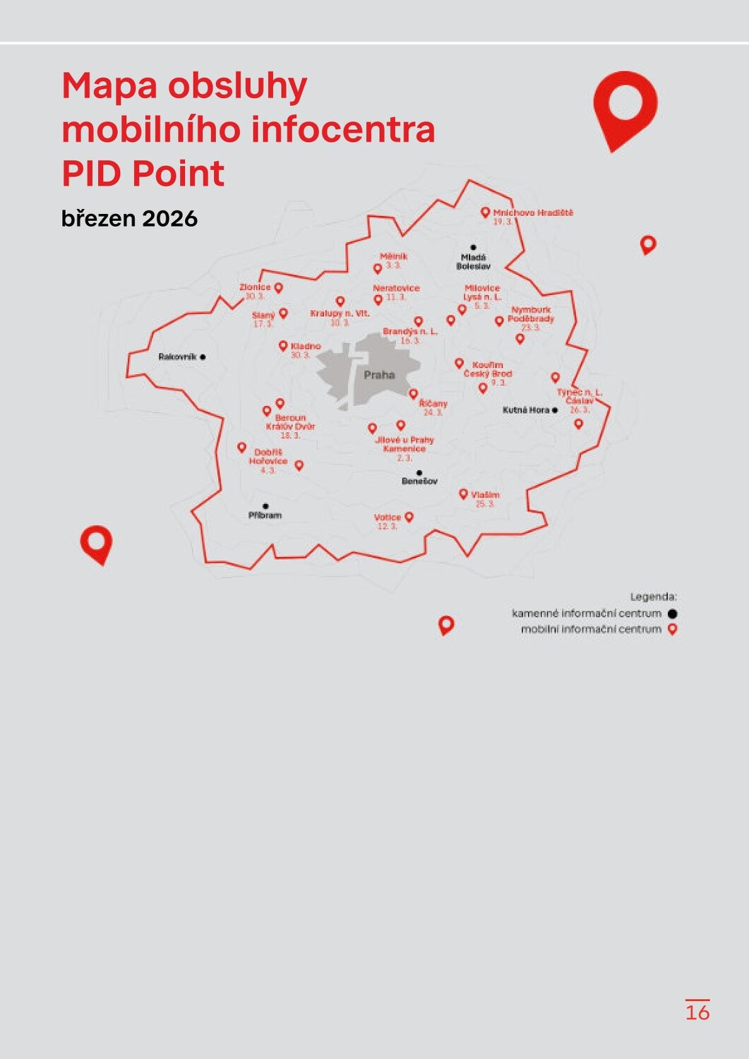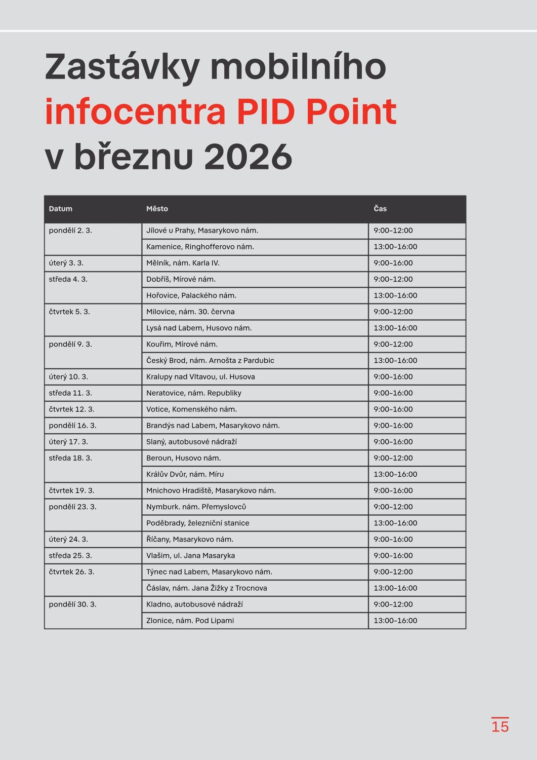 Zastávky mobilního infocentra PID Point v březnu 2026