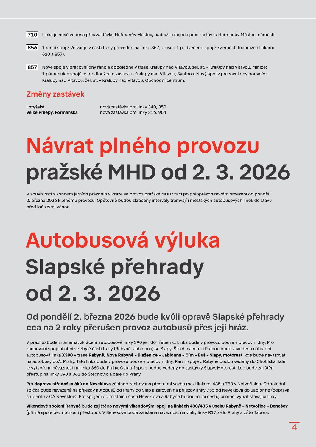 Autobusová výluka Slapské přehrady od 2. 3. 2026