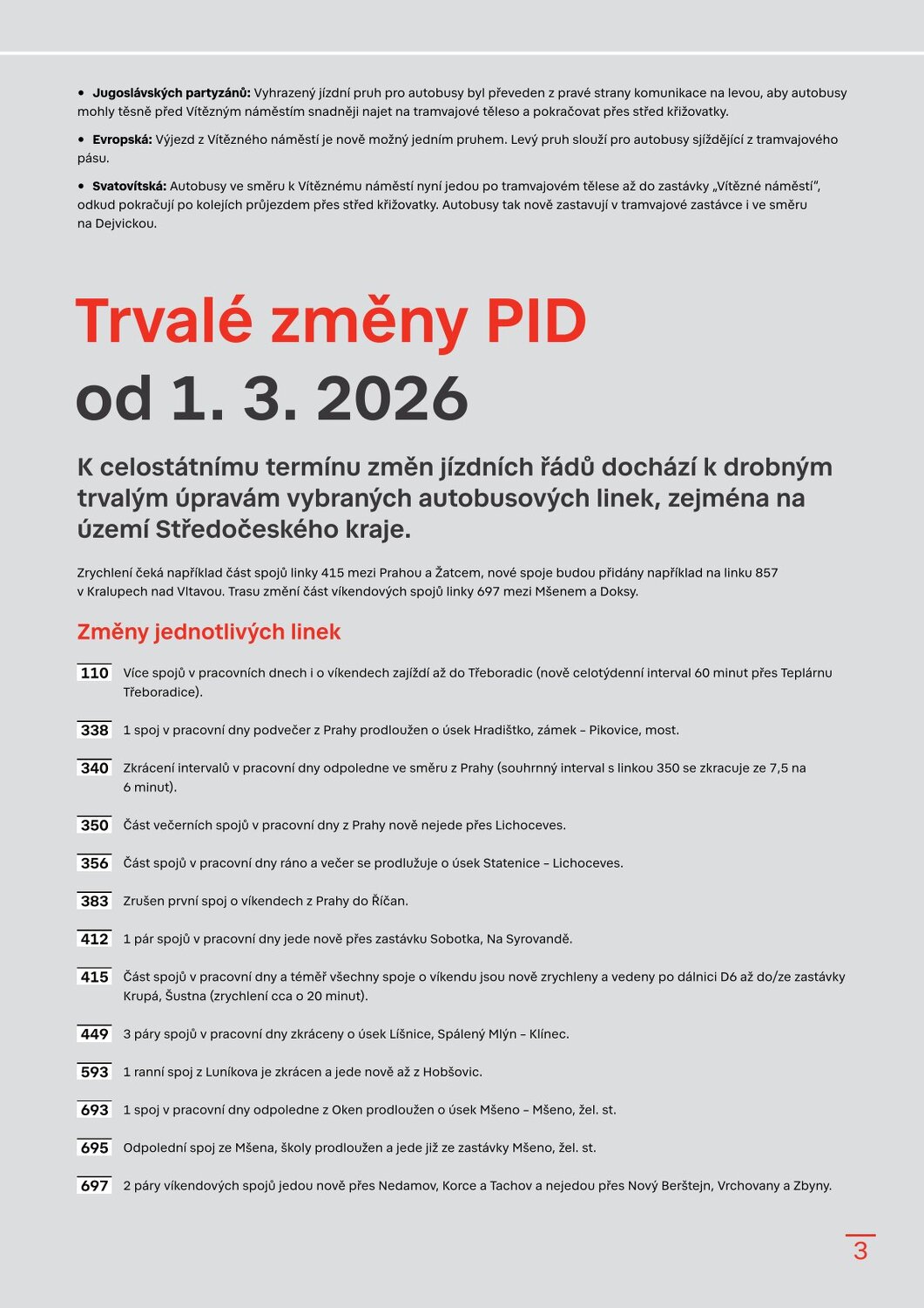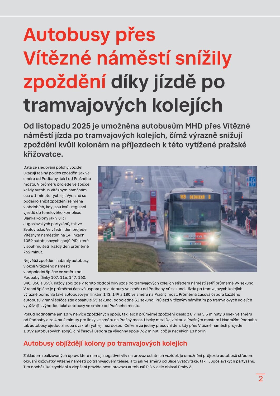 Autobusy přes Vítězné náměstí snížily zpoždění díky jízdě po tramvajových kolejích Trvalé změny PID od 1. 3. 2026