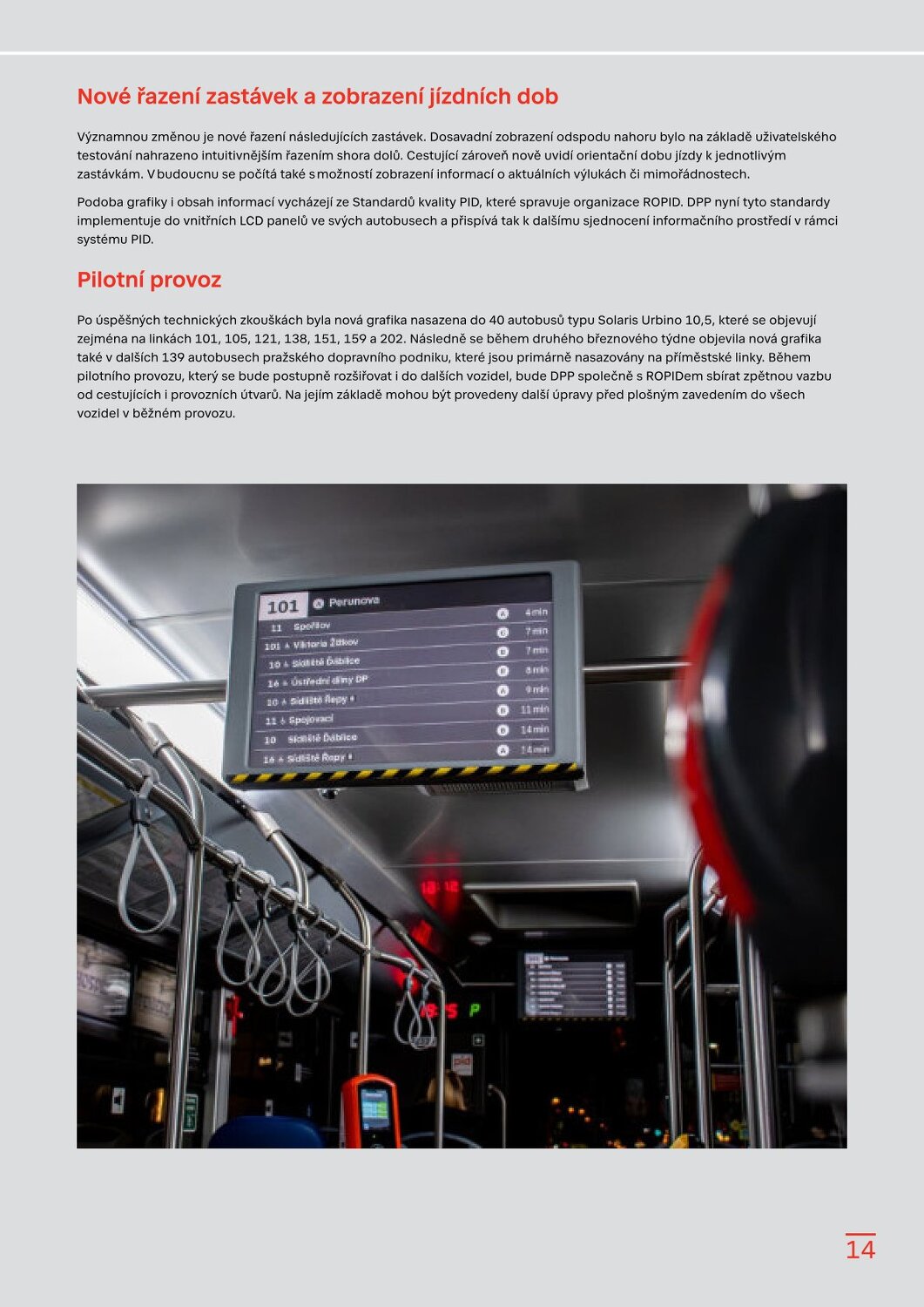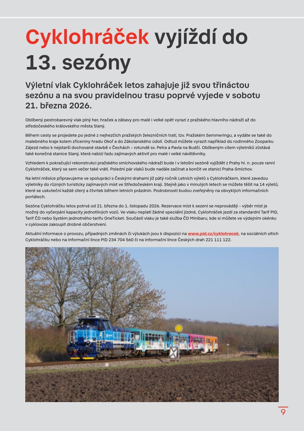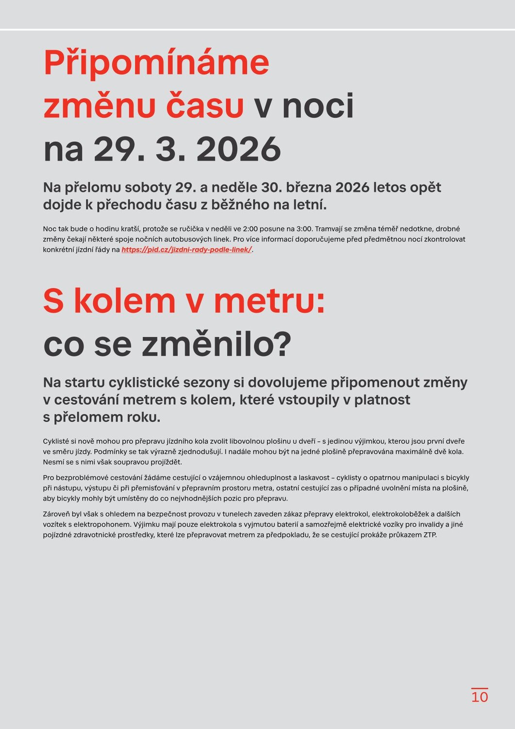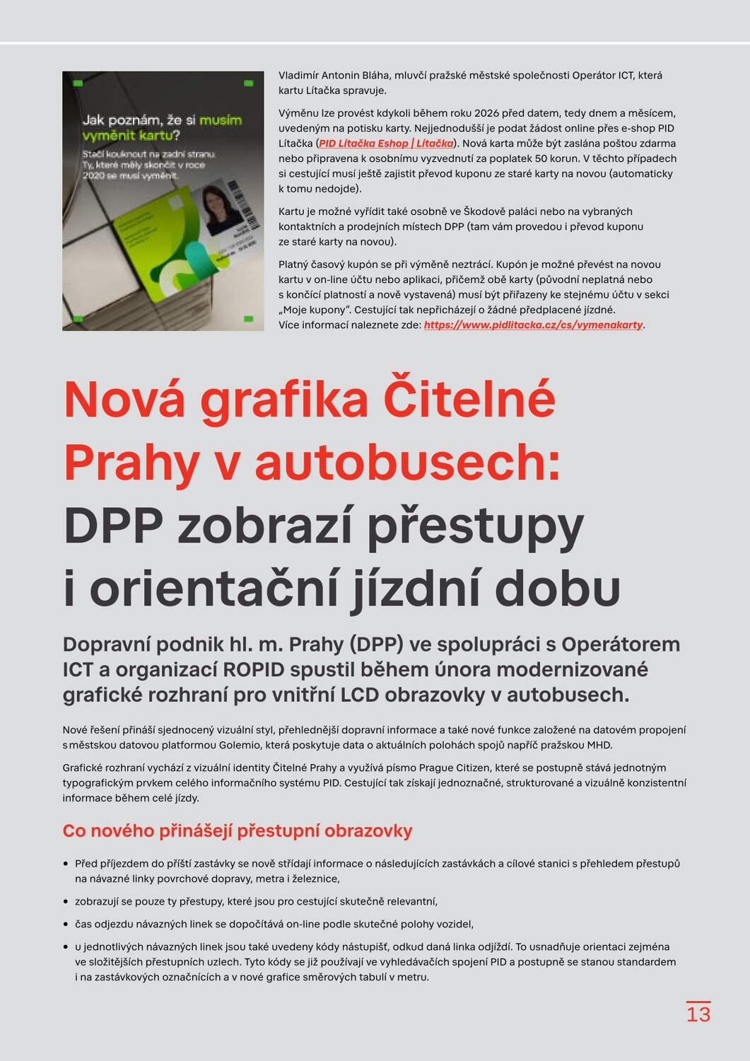 Stanice Českomoravská v novém, Hradčanská počká na dokončení Flory Dvorecký most se otevírá, řada tramvají a autobusů zamíří do nových tras Velikonoční provoz a změny zastávek v Květnici Sezonní vlaky PID 2026 Brdský cyklobus na startu další sezony Sezona přívozů začíná 21. března 2026 Cyklohráček vyjíždí do 13. sezóny Připomínáme změnu času v noci na 29. 3. 2026 S kolem v metru: co se změnilo? Na výlet s PIDem – vyšel nový turistický průvodce Velikonoční zastávka 1. 4. 2026 Lítačka nabízí denně 2× 15 minut jízdy zdarma na sdílených kolech Končí Lítačky s vyznačenou platností do roku 2020, jak na výměnu? Nová grafika Čitelné Prahy v autobusech: DPP zobrazí přestupy i orientační jízdní dobu Na Palmovce testujeme nové infotabule v metru Zastávky mobilního infocentra PID Point v březnu 2026 Pod tímto odkazem najdete Zpravodaj v plné velikosti: https://pid.cz/wp-content/uploads/ke-stazeni/zpravodaj/Info_PID_2026-03.pdf