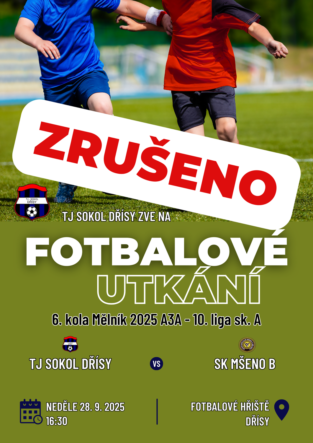 ZRUŠENO!!! FOTBALOVÉ UTKÁNÍ TJ Sokol Dřísy - SK Mšeno B